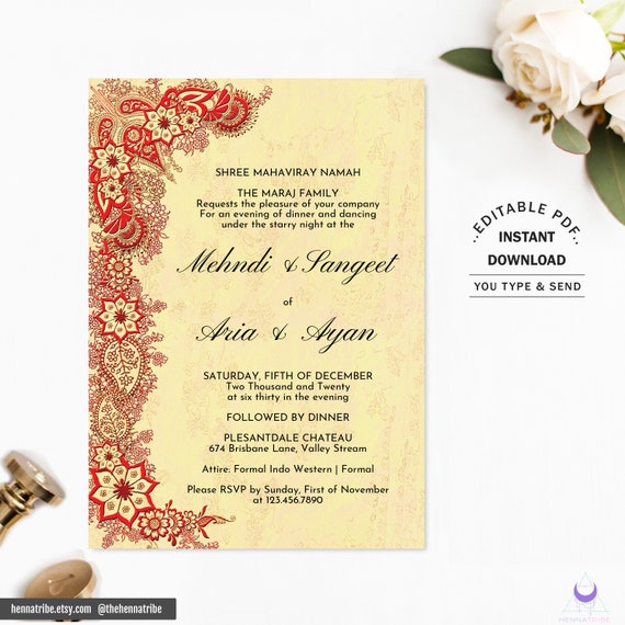Hindu Wedding Invitation Indian Wedding Invitation Desi Wedding Invitation Instant Download And Editable File With Adobe Reader Aria By Nautech Inc Studio Catch My Party